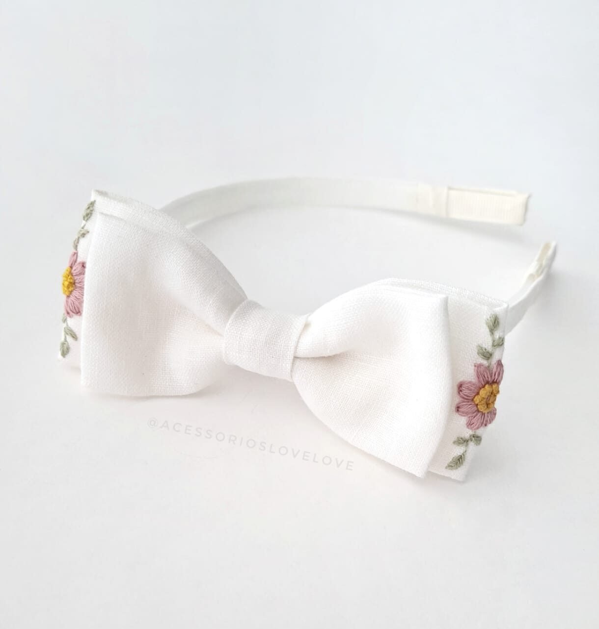 Tags: laço de linho bordado, tiara bordada, tiara com flores, tiara de linho, tiara de tecido