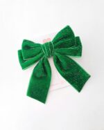 Laço de veludo premium com brilho medindo aproximadamente 12x15cm.