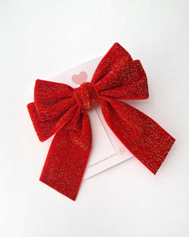 Laço de veludo premium com brilho medindo aproximadamente 12x15cm.