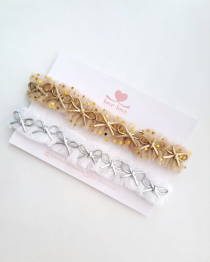 SKU: Não aplicável Categoria: Parzinho Tags: laço dourado, laço prata