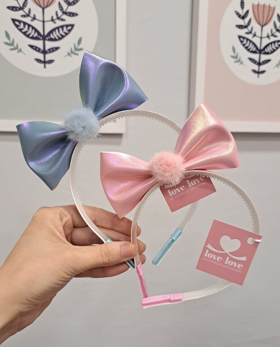 Tiara com laço lateral metalizado.